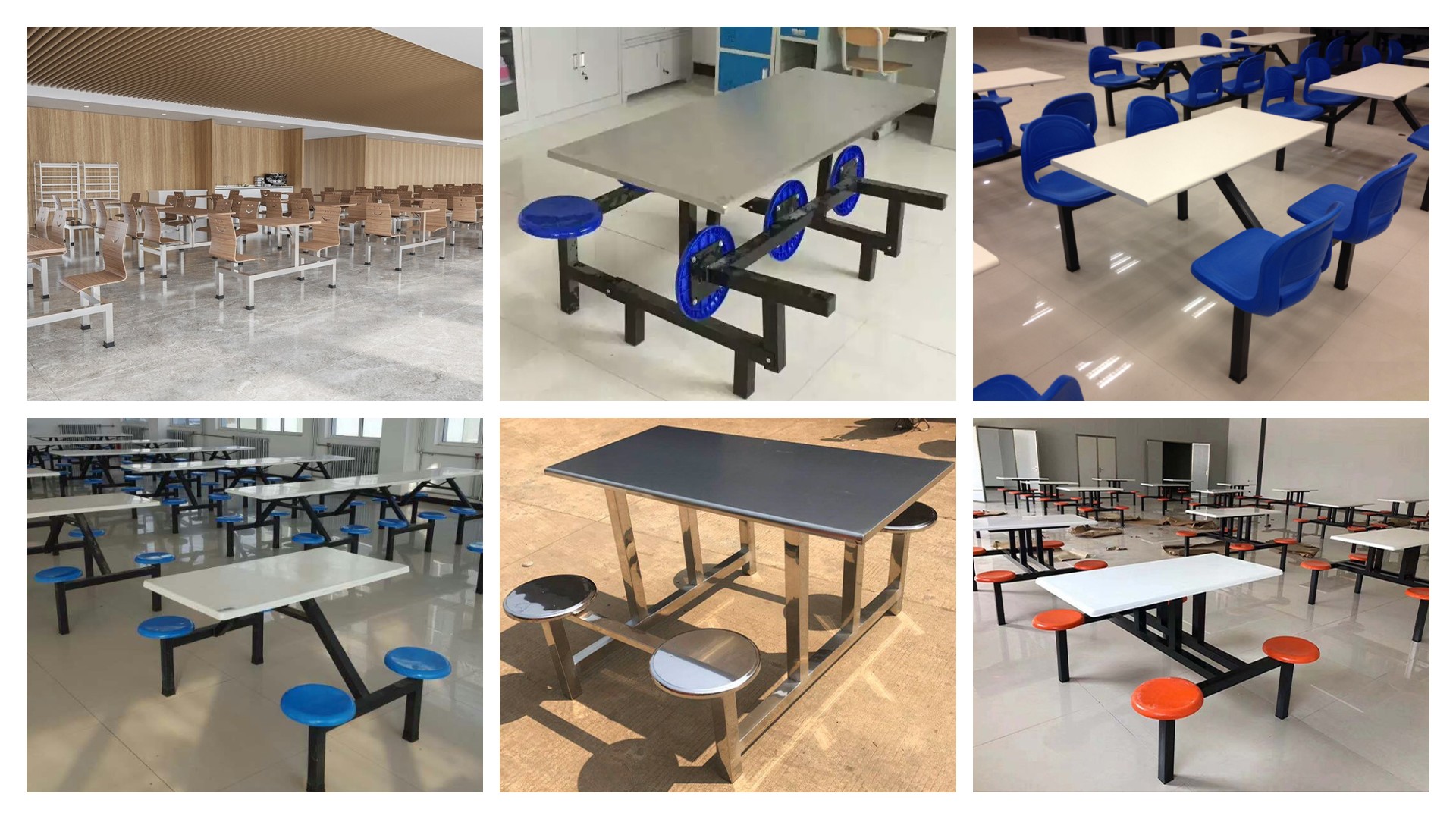 食堂餐桌用材比較廣泛,多以桌面與座椅相連接的款式為主。高度以720mm-760mm為標(biāo)準(zhǔn),餐桌椅是人類(lèi)日常生活和社會(huì)活動(dòng)中使用的具有坐臥、憑倚、餐食等功能的器具。通常由若干個(gè)零、部件按一定接合方式裝配而成。給大家用餐時(shí)使用的桌椅,鋼木結(jié)構(gòu)居多,結(jié)構(gòu)簡(jiǎn)單,顏色簡(jiǎn)潔。